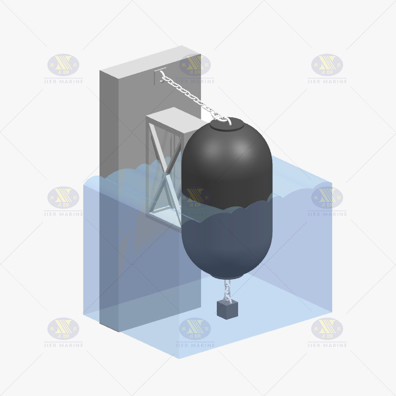 Гидро-пневматические крылья Jier Marine вступают в контакт с судами в качестве подводных лодок под ватерлинией. Гидро-пневматические крылья также могут быть использованы для сосуда к сосуду. Крышки частично заполнены водой и балластны, чтобы плавать вертикально. Производительность может быть настроена путем изменения соотношения воды и воздуха и начального давления.